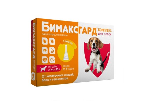 Бимаксгард КОМПЛЕКС Капли для собак 10-25 кг от Чесоточных клещей, Блох и Гельминтов 1 шт х 2,5 мл