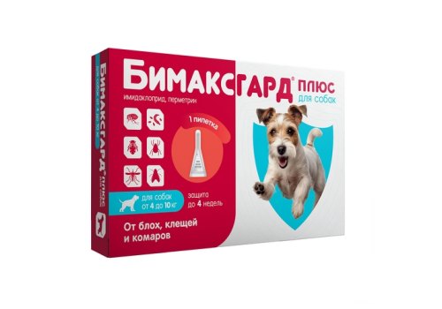 Бимаксгард ПЛЮС для собак 4-10 кг относится к фармакотерапевтической группе инсектоакарицидные средства в комбинациях.