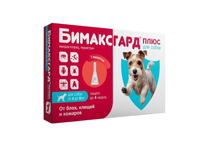 Бимаксгард ПЛЮС Капли для собак 4-10 кг от Блох, Клещей и Комаров 1 шт х 1,0 мл