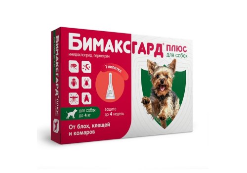 Бимаксгард ПЛЮС Капли для собак до 4 кг от Блох, Клещей и Комаров 1 шт х 0,4 мл
