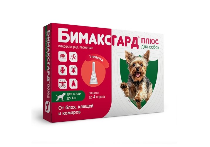 Бимаксгард ПЛЮС для собак до 4 кг относится к фармакотерапевтической группе инсектоакарицидные средства в комбинациях.