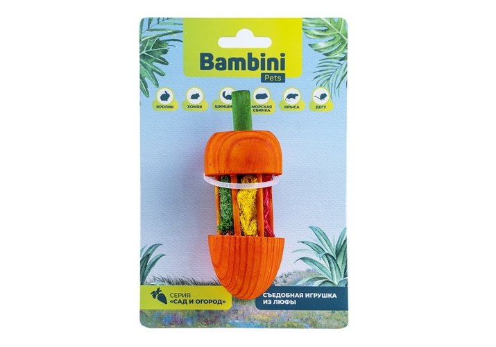 Bambini Pets Игрушка Бамбини Петс для грызунов Морковка из дерева и люфы 1 шт