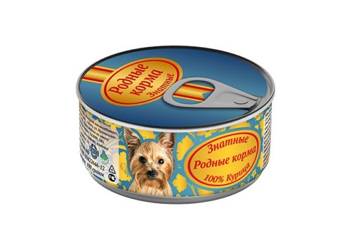 Родные Корма Консервы Знатные для собак 100% Курица (цена за упаковку) 100г x 12шт