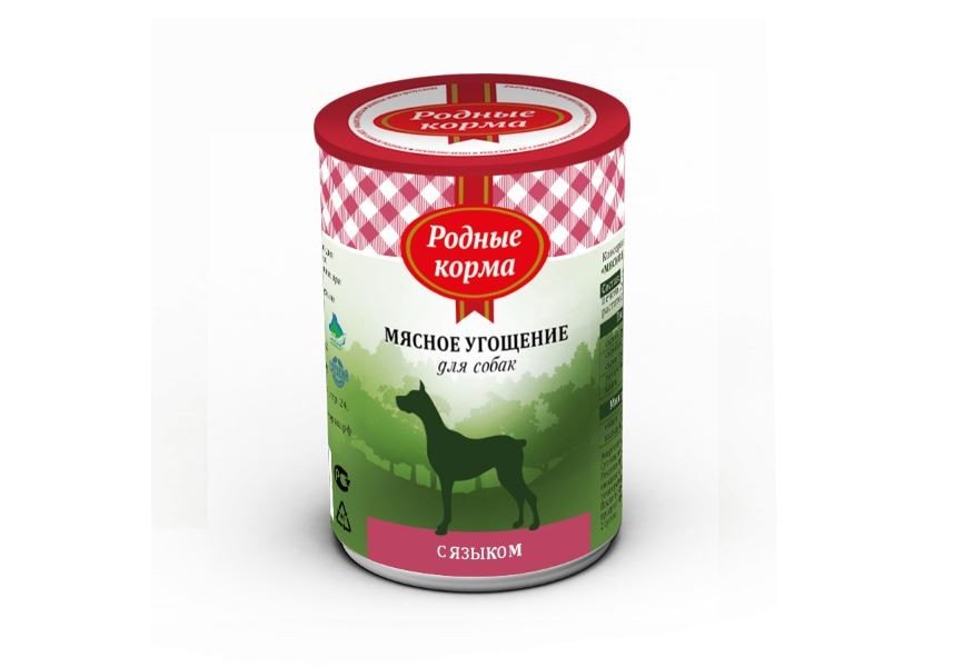 Родные Корма Консервы Мясное угощение для собак с Языком (цена за упаковку) 340г х 12шт
