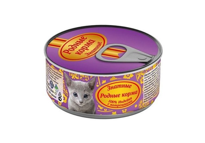Родные Корма Консервы Знатные для Котят 100 % Индейка с Потрошками (цена за упаковку) 100г х 12шт