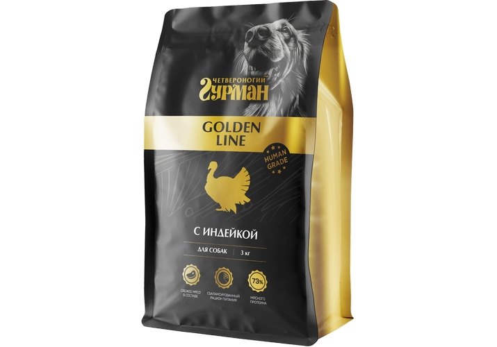 Четвероногий гурман Golden line Сухой полнорационный корм для собак с Индейкой 3 кг