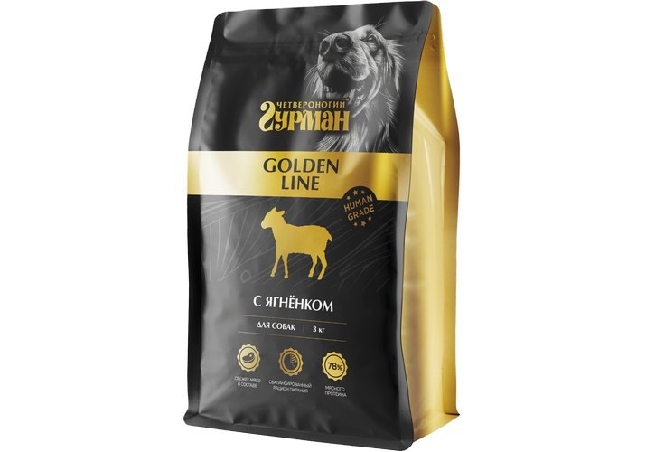 Четвероногий гурман Golden line Сухой полнорационный корм для собак с Ягнёнком 3 кг