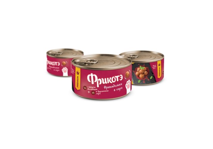 Фрикотэ Консервы для кошек Фрикадельки с телячьим фаршем в брусничном соусе (цена за упаковку) 100г х 16шт