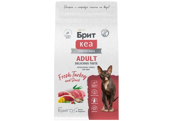 Брит Кеа Adult Delicious Taste Turkey Duck Сухой корм для взрослых Привередливых кошек Индейка Утка 1,5 кг