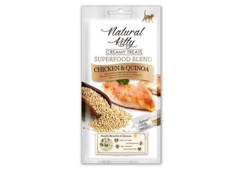 Лакомство для кошек Natural Kitty Creamy treats курица с киноа 4*12 г – приготовлен из куриного мяса, с добавлением киноа. Киноа не содержит глютена, содержит много белка и является одним из немногих растений, содержащих достаточное количество всех 9 незаменимых аминокислот. Также киноа отличный источник клетчатки, магния, витаминов группы В, железа, калия, кальция, фосфора, витамина E и различных антиоксидантов. Вы можете каждый день баловать вашего питомца крем-супом Natural Kitty в качестве лакомства, а также добавлять в основной рацион для улучшения вкуса.