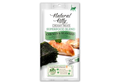 Лакомство для кошек Natural Kitty Creamy treats курица, морские водоросли 4*12 г – приготовлен из куриного мяса, с добавлением морских водорослей. Содержит большое количество минералов, которые благотворно влияют на функцию щитовидной железы, также добавление в рацион кошки морских водорослей обеспечивает здоровое пищеварение и способствует поддержанию веса. Вы можете каждый день баловать вашего питомца крем-супом Natural Kitty в качестве лакомства, а