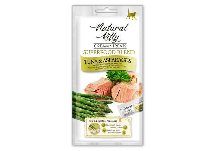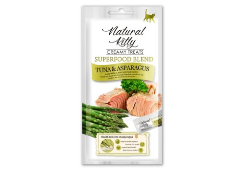 Лакомство для кошек Natural Kitty Creamy treats тунец со спаржей 4*12 г – приготовлен из тунца, с добавлением спаржи, которая является отличным источником клетчатки, что обеспечивает поддержку пищеварительному тракту. Также содержит большое количество калия , который необходим для работы сердца и поддержания нормального кровяного давления, а также витаминов A, C, и K. Вы можете каждый день баловать вашего питомца крем-супом Natural Kitty в качестве лакомства, а также добавлять в основной рацион для улучшения вкуса.