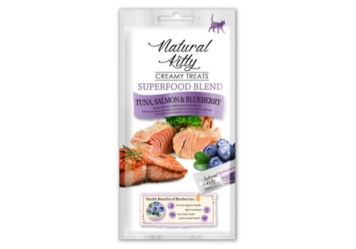 Pettric Natural Kitty Лакомство Петрик для кошек Крем-суп для кошек Тунец лосось и черника (цена за упаковку) 12г х 4шт