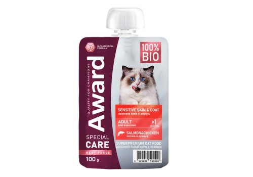 Award Special Care Sensitive Skin & Coat Влажный дополнительный корм Авард для взрослых кошек для Здоровья кожи и шерсти Лосось и курица 100 г