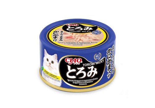 Inaba Ciao Toromi Milky Консервы Инаба для кошек Магуро и куриное филе с сурими в овсяном молоке (цена за упаковку) 80г х 24шт