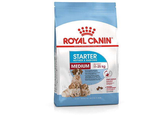 Формула ROYAL CANIN® Medium Starter Mother&Babydog удовлетворяет энергетические потребности собаки средних размеров с 42-го дня беременности и в течение всего периода лактации, а также потребности щенков до 2-х месяцев.