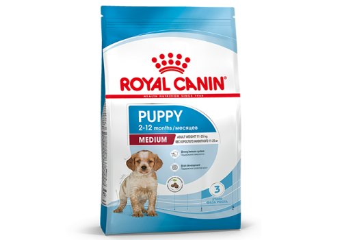 Корм сухой полнорационный для щенков средних пород (вес взрослой собаки от 11 до 25 кг) в возрасте до 12 месяцев MEDIUM PUPPY 2-12 months (МЕДИУМ ПАППИ 2-12 месяцев) ROYAL CANIN®, подходящий для щенков средних пород в возрасте до 12 месяцев, специально разработан с учетом потребностей в питательных веществах вашего щенка в период роста.