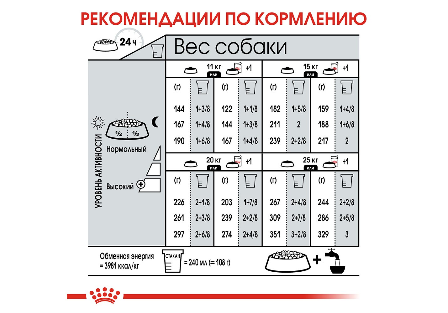 См. таблицу. Корм готов к употреблению.