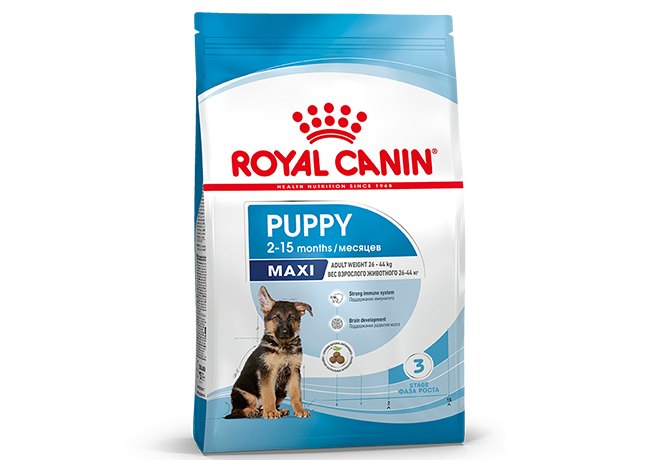 Корм сухой полнорационный для щенков крупных пород (вес взрослой собаки от 26 до 44 кг) в возрасте до 15 месяцев MAXI PUPPY (МАКСИ ПАППИ) ROYAL CANIN®, подходящий для щенков крупных пород в возрасте до 15 месяцев, специально разработан с учетом потребностей вашего щенка в питательных веществах в период роста.