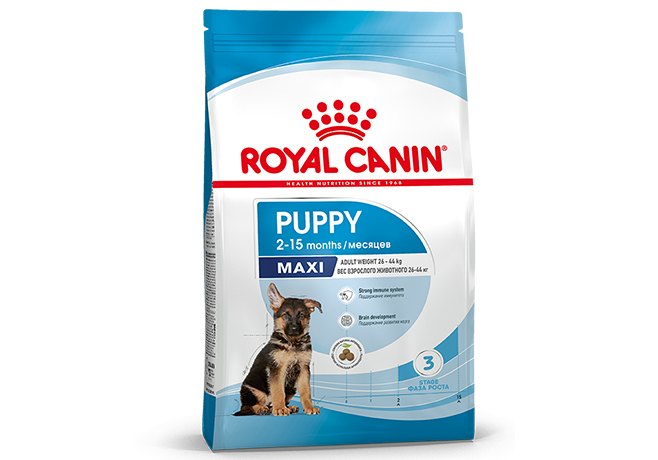 Корм сухой полнорационный для щенков крупных пород (вес взрослой собаки от 26 до 44 кг) в возрасте до 15 месяцев MAXI PUPPY (МАКСИ ПАППИ) ROYAL CANIN®, подходящий для щенков крупных пород в возрасте до 15 месяцев, специально разработан с учетом потребностей вашего щенка в питательных веществах в период роста.