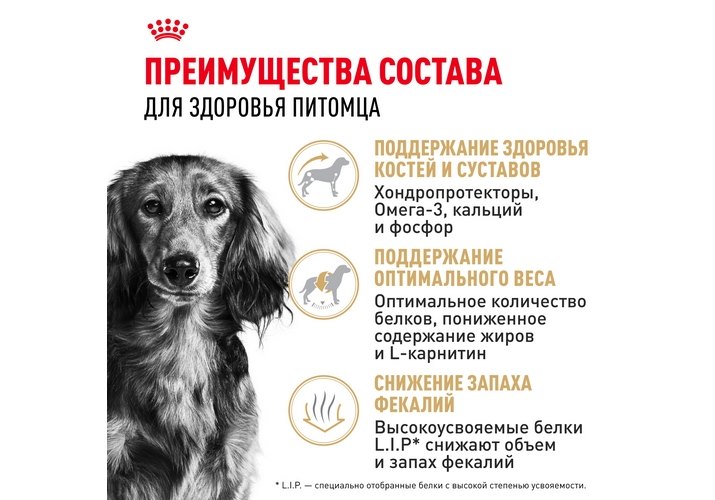 Также ROYAL CANIN® Dachshund Adult способствует уменьшению объема и запаха стула.