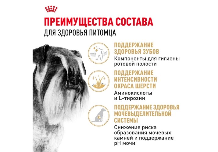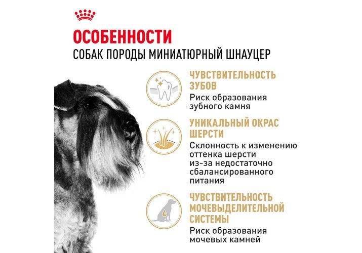 Корм ROYAL CANIN® Miniature Schnauzer Adult, предназначенный для собак старше 10 месяцев, специально разработан с учетом пищевых потребностей вашего взрослого миниатюрного шнауцера.
