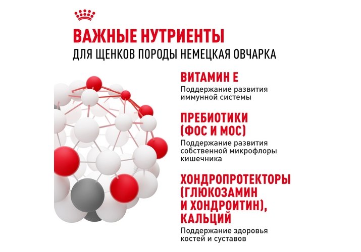 Поскольку иммунная система вашего щенка развивается постепенно, корм ROYAL CANIN® German Shepherd Puppy (НЕМЕЦКАЯ ОВЧАРКА ПАППИ) содержит эффективный комплекс антиоксидантов, комплекс антиоксидантов, включая витамин Е, таурин и лютеин, для поддержания естественной защиты в период формирования его иммунной системы.