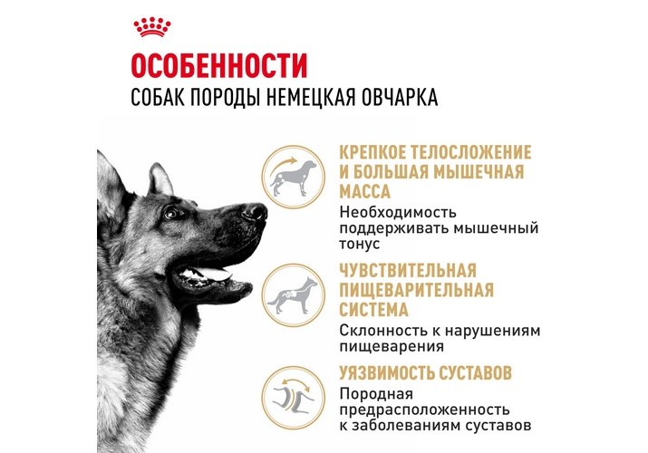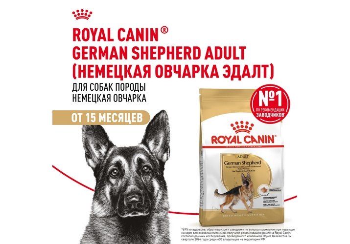 Корм ROYAL CANIN® German Shepherd Adult, предназначенный для немецких овчарок в возрасте 15 месяцев и старше, специально разработан с учетом потребностей вашей взрослой собаки в питательных веществах.
