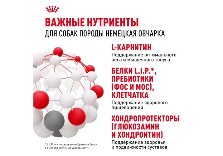 Формула помогает поддерживать здоровье пищеварительной системы, учитывая чувствительное пищеварение собак породы немецкая овчарка, благодаря наличию высокоусвояемых белков L.I.P. и особых видов пищевой клетчатки, снижающих ферментацию в кишечнике и обеспечивающих баланс кишечной флоры.