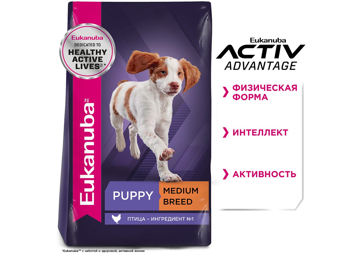 Корм сухой полнорационный для щенков средних пород с птицей PUPPY MEDIUM BREED ˂12 MONTHS (ПАППИ МЕДИУМ БРИД ˂12 МЕСЯЦЕВ) EUKANUBA®, подходящий для щенков с повышенной активностью, в возрасте до 12 месяцев, специально разработан с учетом потребностей вашего активного щенка.