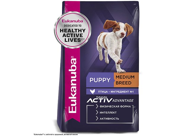Корм сухой полнорационный для щенков средних пород с птицей PUPPY MEDIUM BREED ˂12 MONTHS (ПАППИ МЕДИУМ БРИД ˂12 МЕСЯЦЕВ) EUKANUBA®, подходящий для щенков с повышенной активностью, в возрасте до 12 месяцев, специально разработан с учетом потребностей вашего активного щенка.
