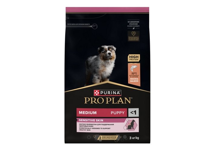 Изучая потребности щенков на протяжении многих лет, команда квалифицированных ветеринарных специалистов и диетологов PURINA разработала сухой корм PRO PLAN® Sensitive skin (для чувствительной кожи) — ежедневный рацион с высоким содержанием лосося для щенков средних пород. Этот полнорационный корм сбалансирован по составу и помогает поддерживать здоровье чувствительной кожи.