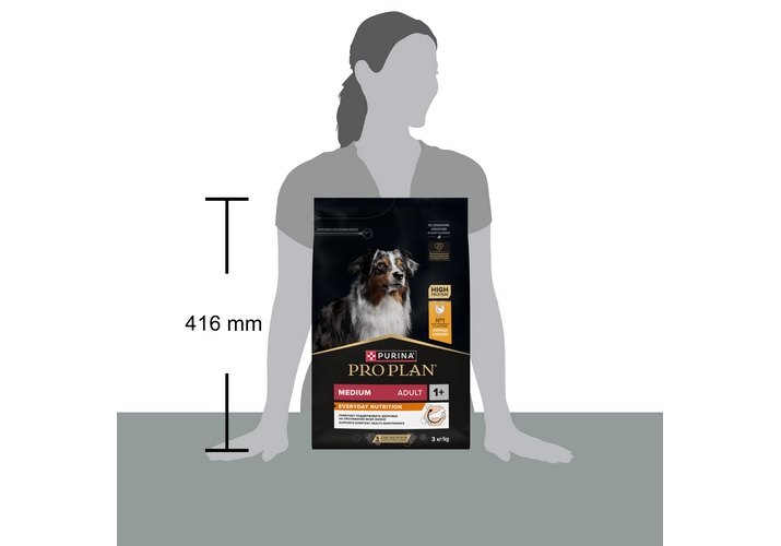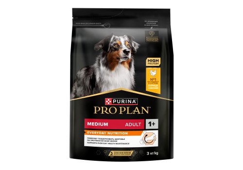 Изучая потребности собак на протяжении многих лет, команда квалифицированных ветеринарных специалистов и диетологов PURINA разработала сухой корм PRO PLAN® Everyday Nutrition — ежедневный рацион с высоким содержанием курицы для взрослых собак средних пород. Этот полнорационный корм сбалансирован по составу и помогает поддерживать здоровье вашей собаки на протяжении всей жизни.
