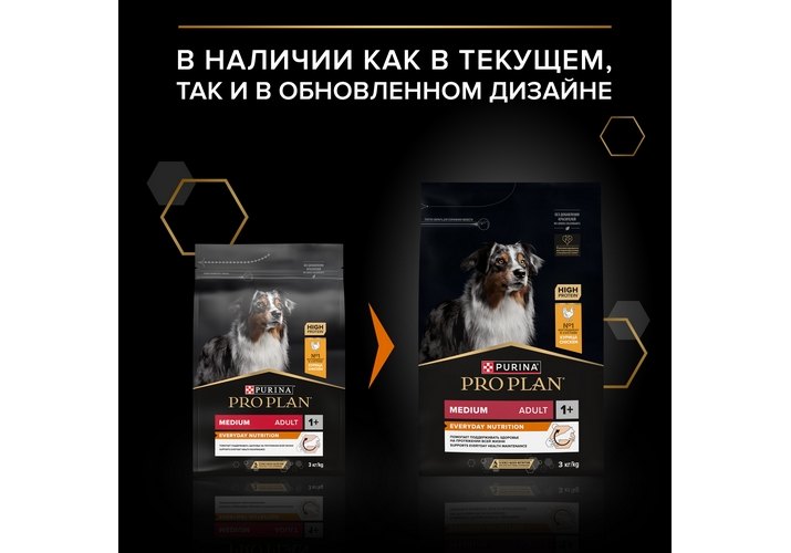 Корм сухой для взрослых собак средних пород PRO PLAN® Everyday Nutrition (ежедневный рацион) — это полюбившийся PRO PLAN® Opti Balance (Опти Баланс) с новым названием, но с прежним составом и качеством.