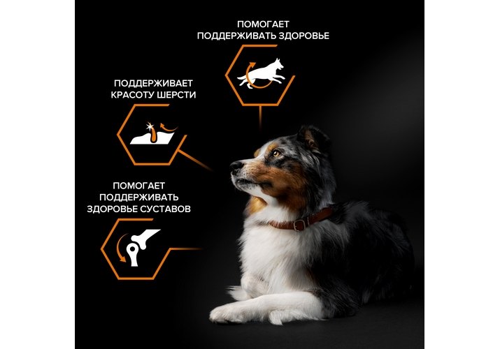 • Сочетание основных питательных веществ помогает поддерживать здоровье суставов вашей собаки при активном образе жизни.