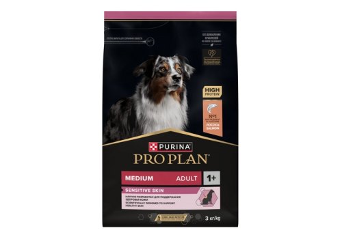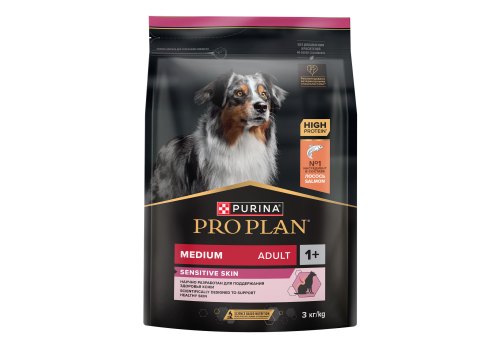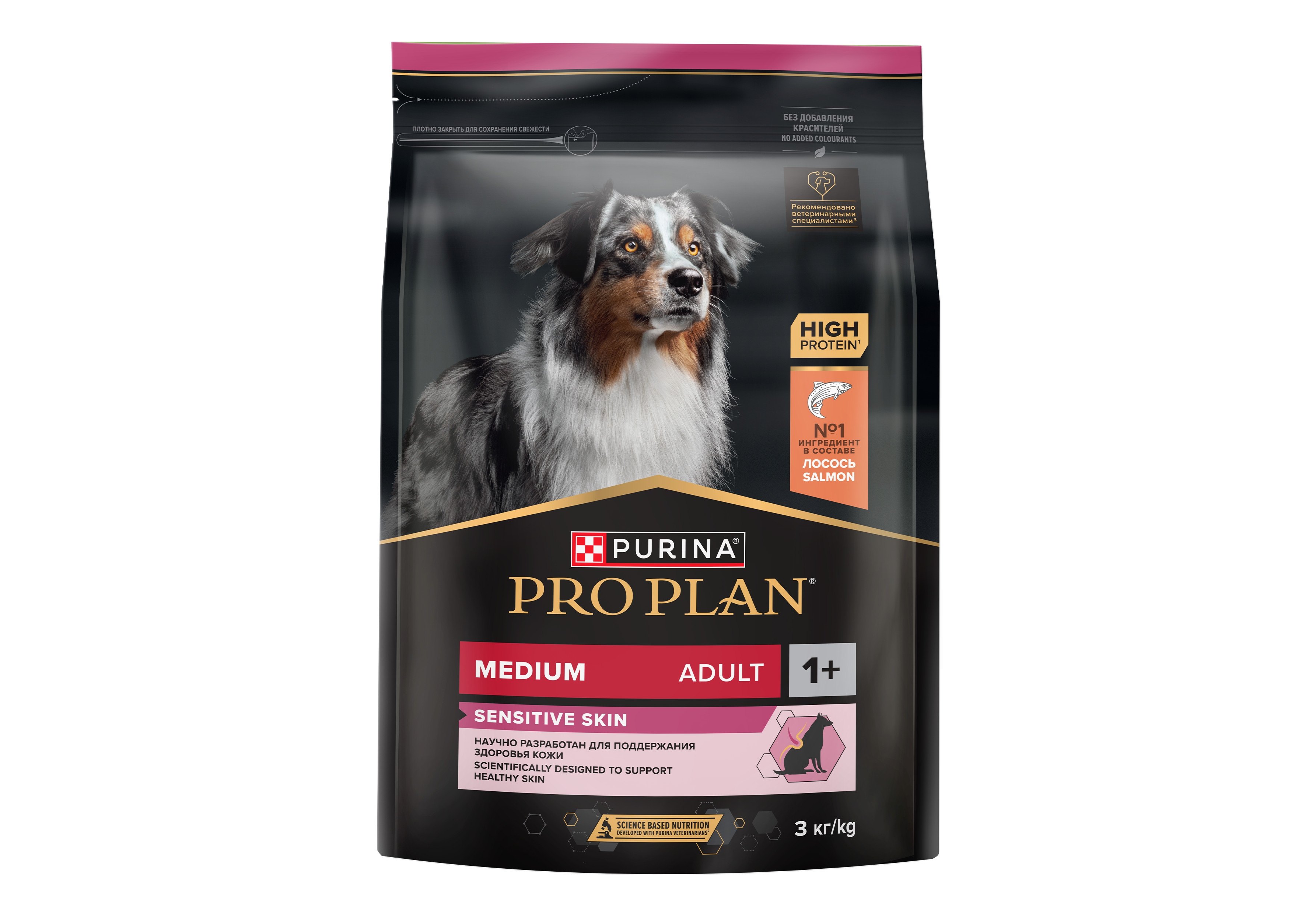 Изучая потребности собак на протяжении многих лет, команда квалифицированных ветеринарных специалистов и диетологов PURINA разработала сухой корм PRO PLAN® Sensitive skin (для чувствительной кожи) — ежедневный рацион с высоким содержанием лосося для взрослых собак средних пород. Этот полнорационный корм сбалансирован по составу и помогает поддерживать здоровье чувствительной кожи.