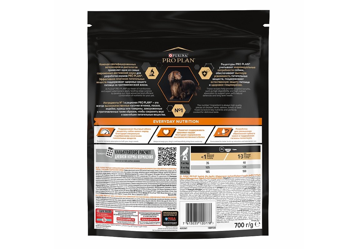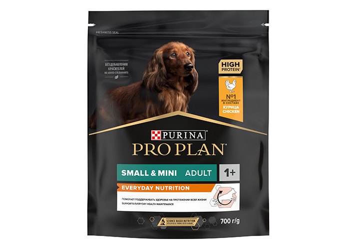 Изучая потребности собак на протяжении многих лет, команда квалифицированных ветеринарных специалистов и диетологов PURINA разработала сухой корм PRO PLAN® Everyday Nutrition — ежедневный рацион с высоким содержанием курицы для взрослых собак мелких и карликовых пород. Этот полнорационный корм сбалансирован по составу и помогает поддерживать здоровье вашей собаки на протяжении всей жизни.