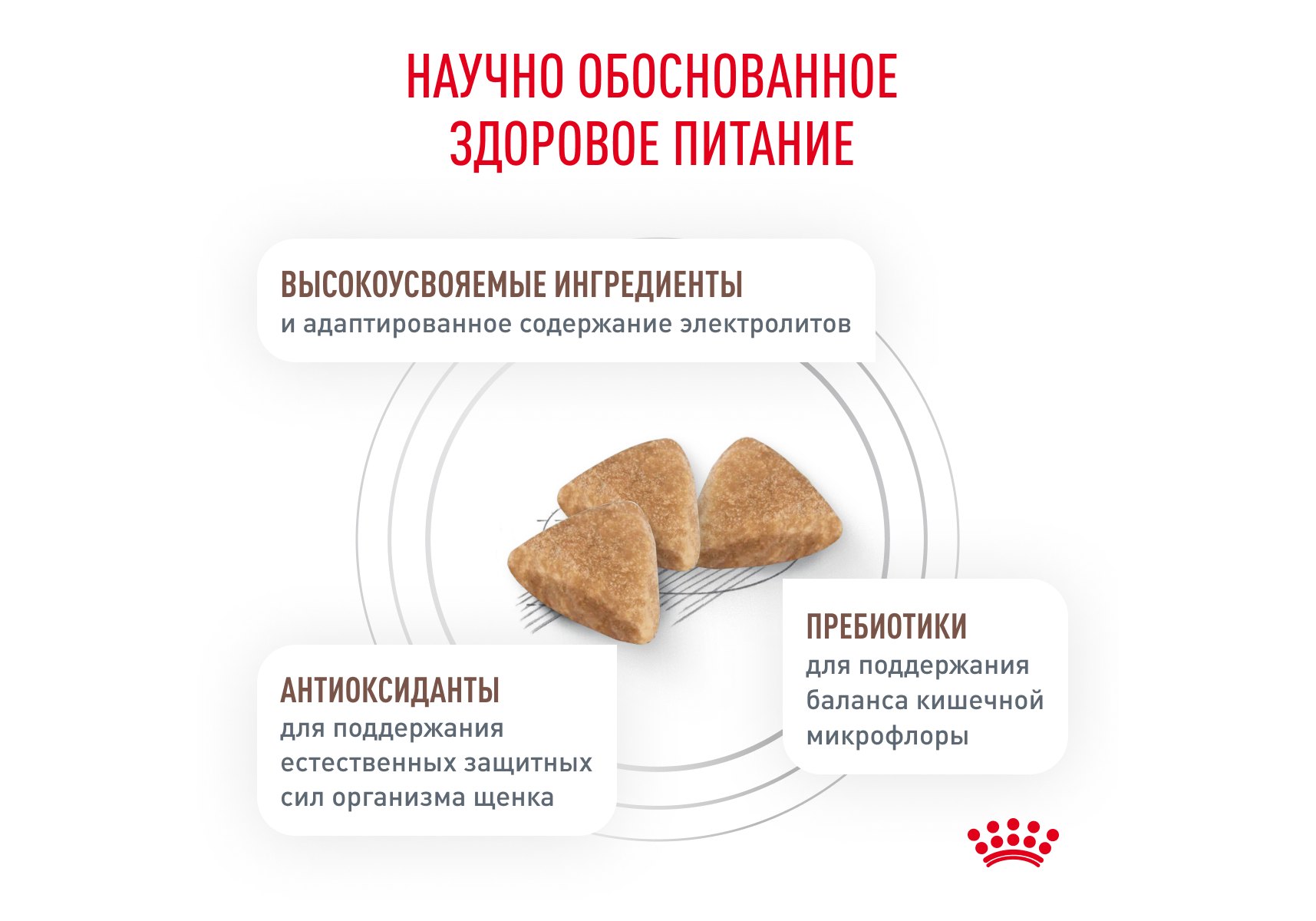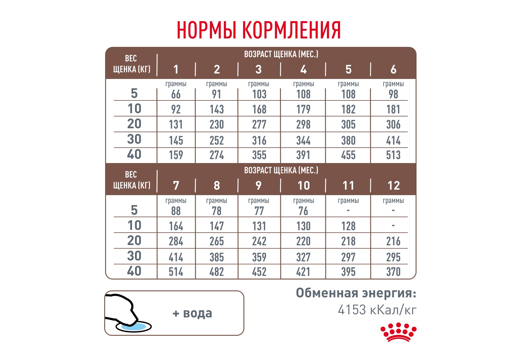 Высокое содержание энергии отвечает потребностям щенков и позволяющая снизить нагрузки на кишечник.