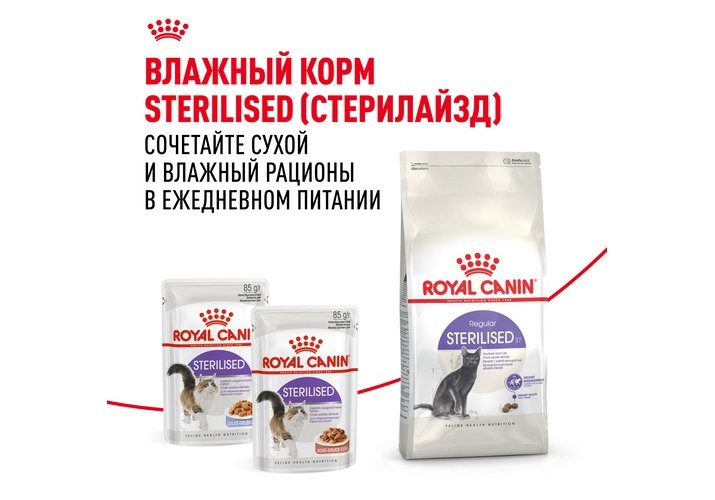 Корм сухой полнорационный сбалансированный для стерилизованных кошек (в возрасте от 1 года до 7 лет) STERILISED 37 (СТЕРИЛАЙЗД 37) ROYAL CANIN®, подходящий для стерилизованных кошек в возрасте от 1 года до 7 лет, специально разработан с учетом потребностей вашей кошки в питательных веществах.