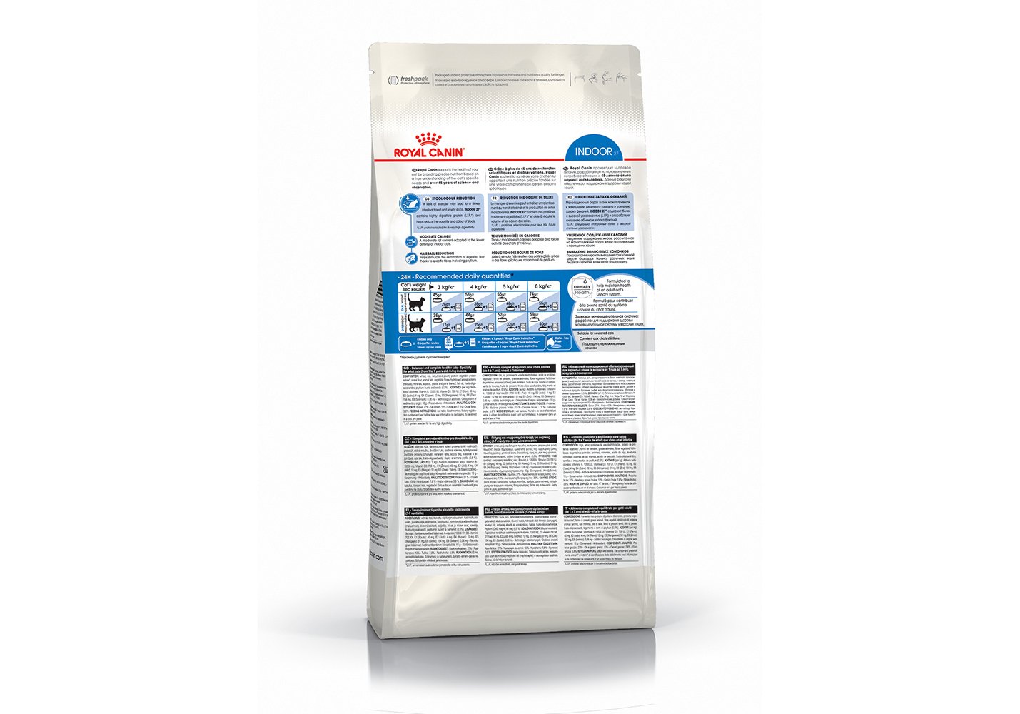 3. Выведение волосяных комочков: помогает стимулировать выведение проглоченной шерсти благодаря балансу различных видов пищевой клетчатки, в том числе подорожнику. Indoor 27® помогает стимулировать кишечный транзит и выведение проглоченной шерсти благодаря балансу различных видов пищевой клетчатки, в том числе подорожнику.