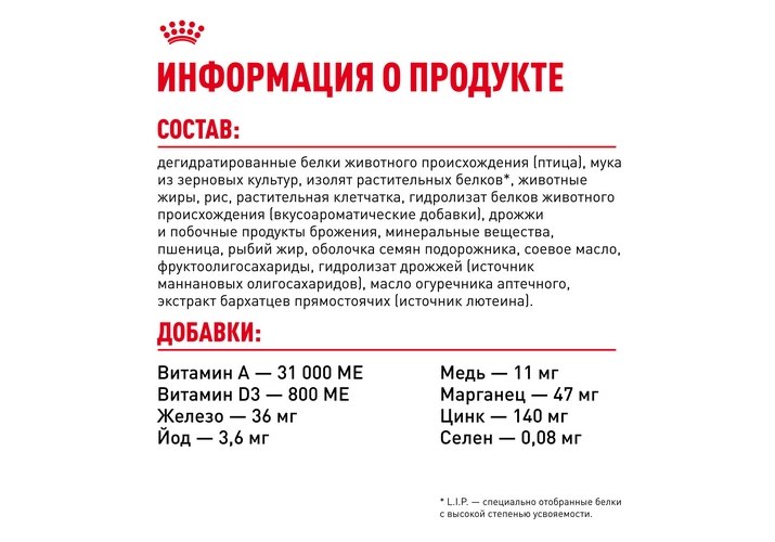 *L.I.P.: специально отобранные белки с высокой степенью усвояемости.