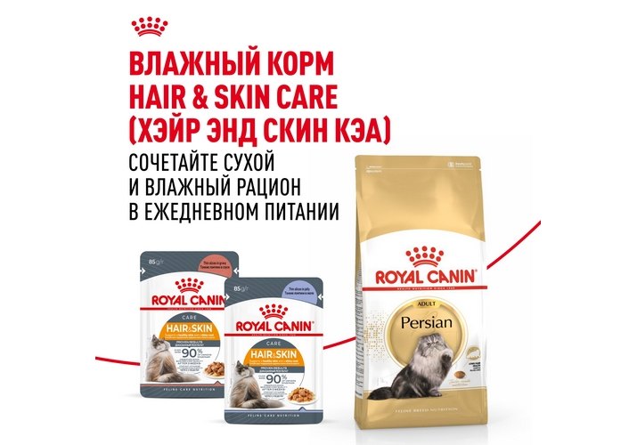 Для удовлетворения индивидуальных предпочтений каждого животного ROYAL CANIN® Persian Adult выпускается также в виде паштета. Если Вы выбрали для своей кошки смешанное питание, следуйте рекомендованным нормам кормления, чтобы сочетать сухой и влажный продукт в пропорциях, оптимальных для здоровья животного.