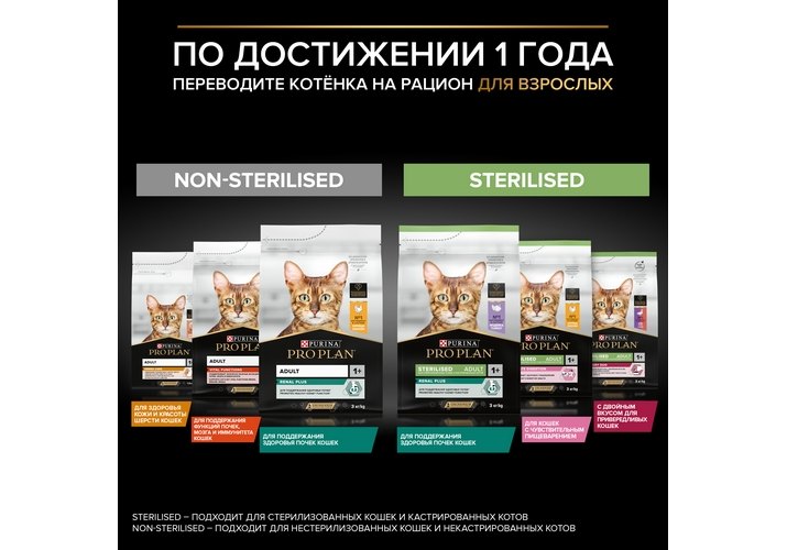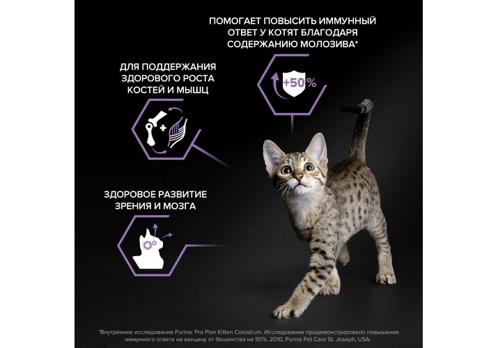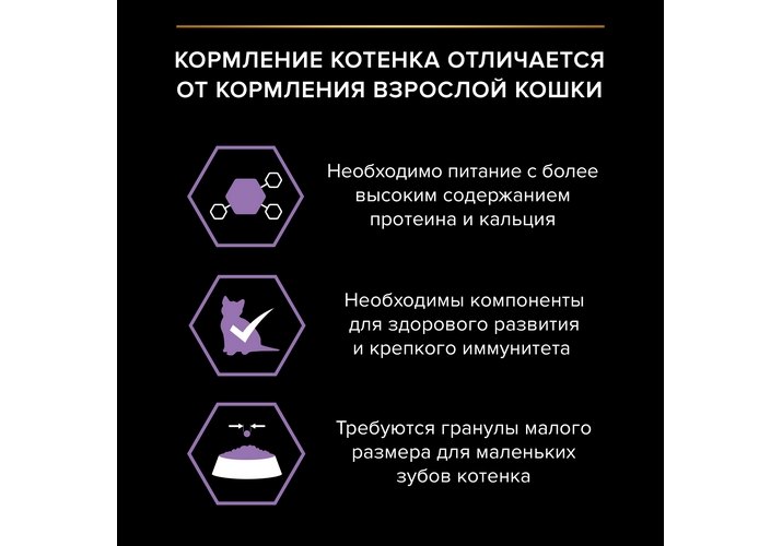 см. таблицу. Переводите котенка на корм Pro Plan® JUNIOR в возрасте 3-4 недели. Для более легкого поедания корм следует смешивать с водой. Постепенно уменьшайте количество добавляемой для размачивания воды до того момента, когда котенок сможет есть не размоченный корм. Придерживайтесь 2-3 разового кормления или давайте корм по необходимости.