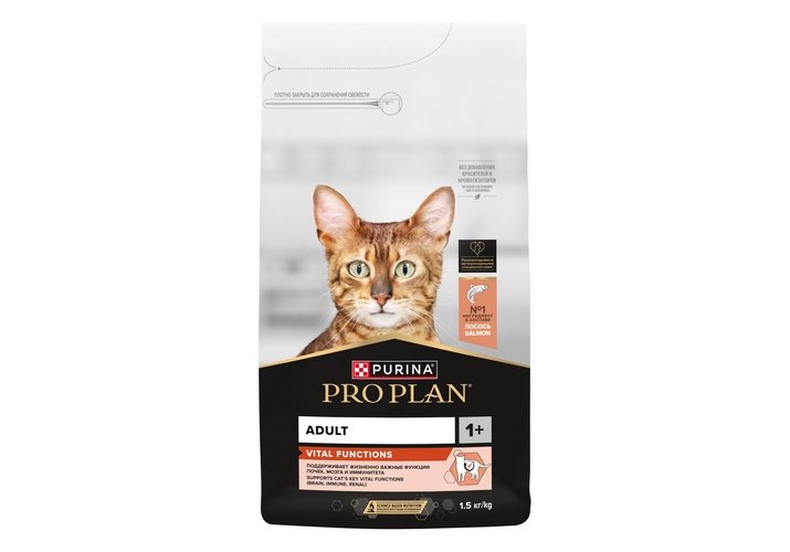 Команда квалифицированных ветеринарных специалистов и диетологов разработала сухой корм для кошек PRO PLAN® VITAL FUNCTIONS для поддержания когнитивных функций мозга. Этот сбалансированный полнорационный сухой корм с лососем обогащен специальным комплексом нутриентов, которые помогают поддерживать умственную активность питомцев в любом возрасте.