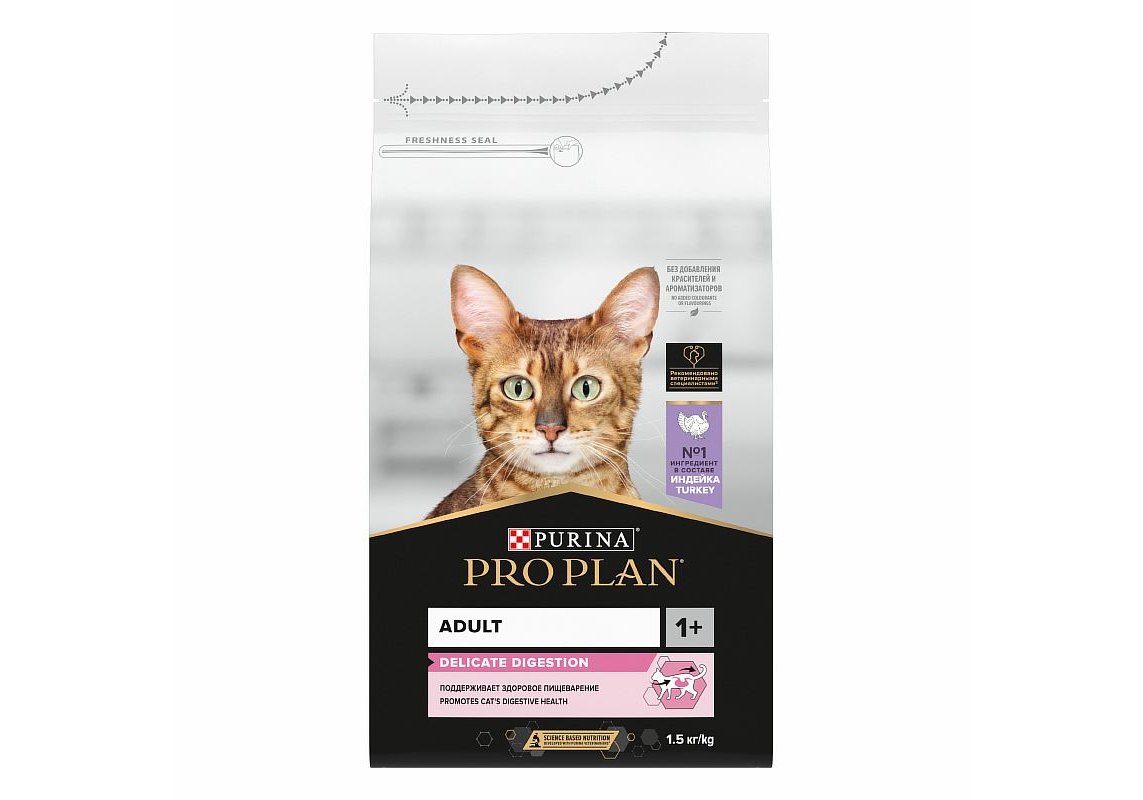 Команда квалифицированных ветеринарных специалистов и диетологов разработала для кошек сухой корм с индейкой PRO PLAN® DELICATE DIGESTION. Этот сбалансированный полнорационный корм обладает легкоусвояемой формулой и подходит для повседневного кормления питомцев с проблемами пищеварения.