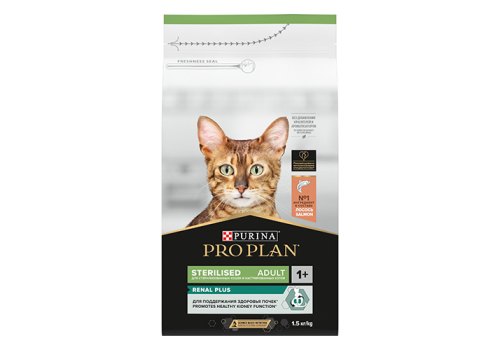 Корм сухой для кошек PRO PLAN® Sterilised RENAL PLUS (Поддержание здоровья почек) — это полюбившийся PRO PLAN® Sterilised OptiRenal с новым названием, но с прежним составом и качеством.
