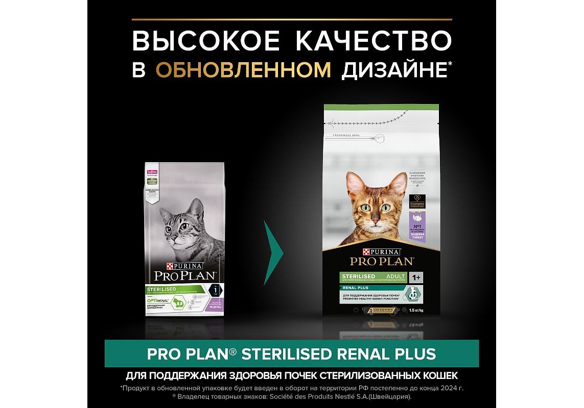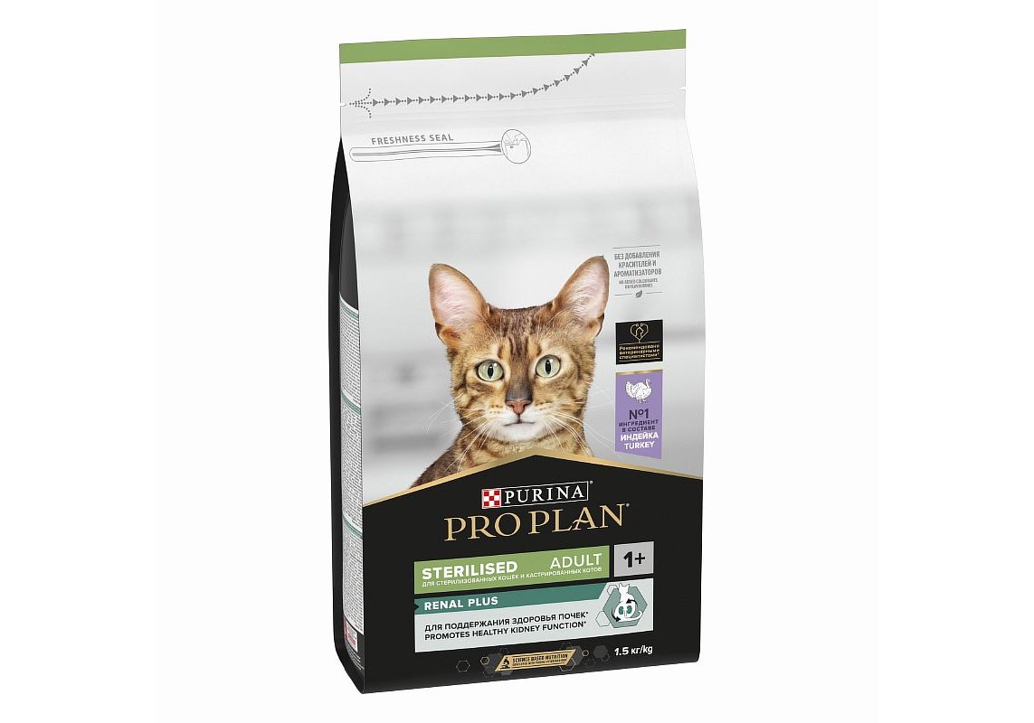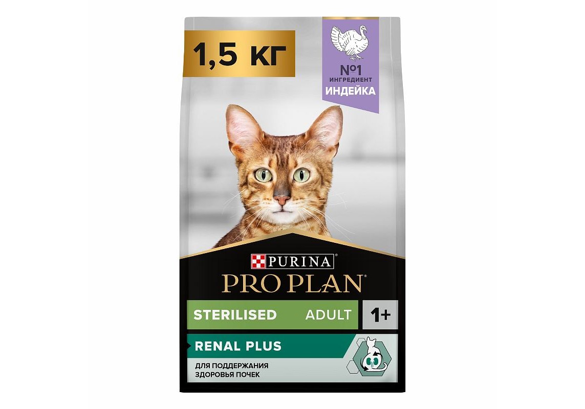 Корм сухой для кошек PRO PLAN® Sterilised RENAL PLUS (Поддержание здоровья почек) — это полюбившийся PRO PLAN® Sterilised OptiRenal с новым названием, но с прежним составом и качеством.