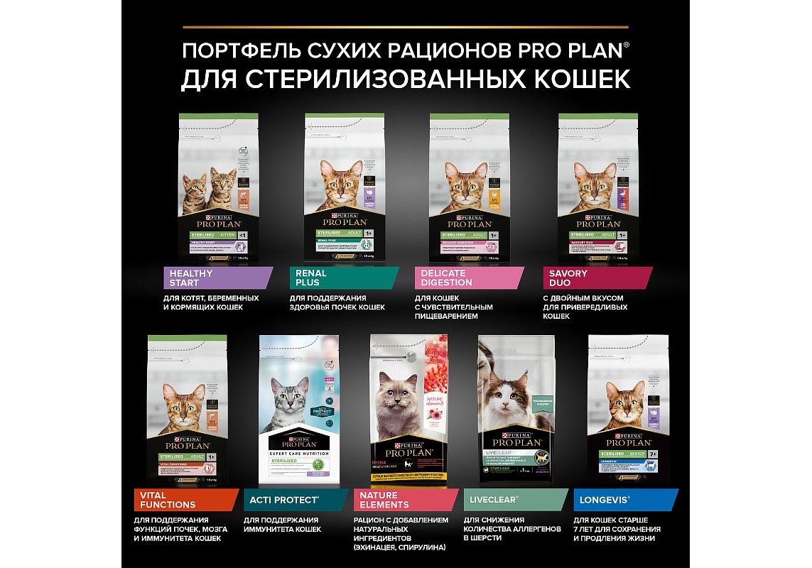 PRO PLAN® от РURINA® — это 100% сбалансированное рационы высокого качества для поддержания здоровья Ваших питомцев на всех этапах их жизни.