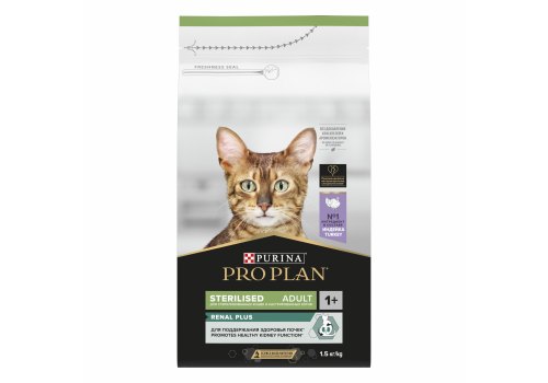 PRO PLAN STERILISED Сухой корм ПРО ПЛАН для взрослых кошек для поддержания здоровья почек после стерилизации с индейкой 1,5 кг