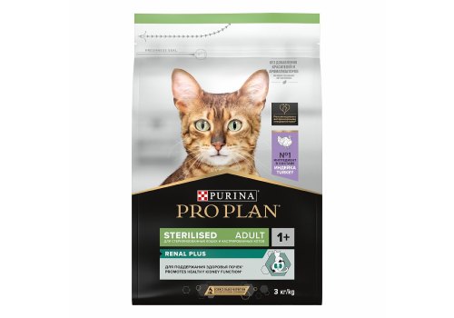 Корм сухой для кошек PRO PLAN® Sterilised RENAL PLUS (Поддержание здоровья почек) — это полюбившийся PRO PLAN® Sterilised OptiRenal с новым названием, но с прежним составом и качеством.